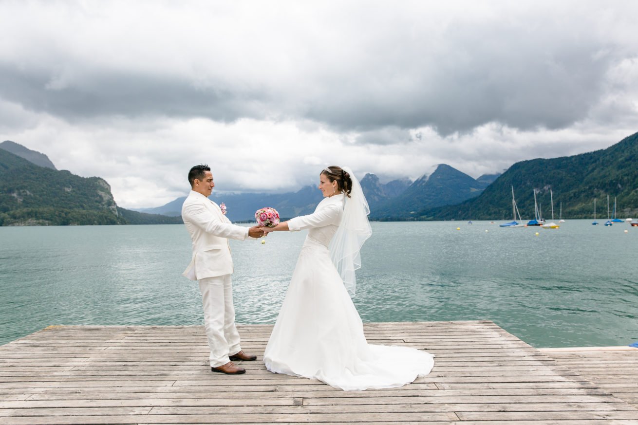 In Ihrer ehemaligen Heimat in Zell am See hat Martina mit Ihrem Christian Ihre kirchliche Trauung organisiert. Bereits am Vormittag sind die ersten Paarfotos entstanden, bevor die kirchliche Trauung in Zell am See statt fand. Im Anschluss lud das Brautpaar zur Schifffahrt auf dem Zeller See, wo auch die Hochzeitstorte angeschnitten wurde. Im Anschluss haben wir noch die Zeit für weitere Paarfotos genutzt, bevor sich das Paar zur Feier verabschiedete